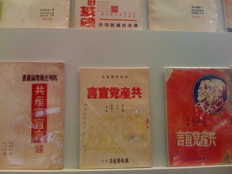 然后整个纪念馆有三层展区,我一开始以为只有两层。一楼有南陈北李,相约建党:展示了李大钊同志就义时的绞架;陈独秀文存以及两者建党的油画;陈望道隐居在家中翻译共产党宣言的场景雕塑;各种版本的共产党宣言;马克思主义在中国的传播---新民主主义、新青年、五四运动、少年中国学会、觉悟社、新潮;中国民族工业的发展和无产阶级的壮大。