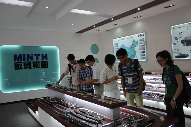 第二天,实践队来到了嘉兴市MINTH(敏实)集团,该集团是专业设计、生产、销售汽车零部件的外资上市集团公司,自1992年,已相继全国各地设立了二十余家生产性工厂,二家技术中心和两家模具厂,并每年以最少2个厂的速度在增长。