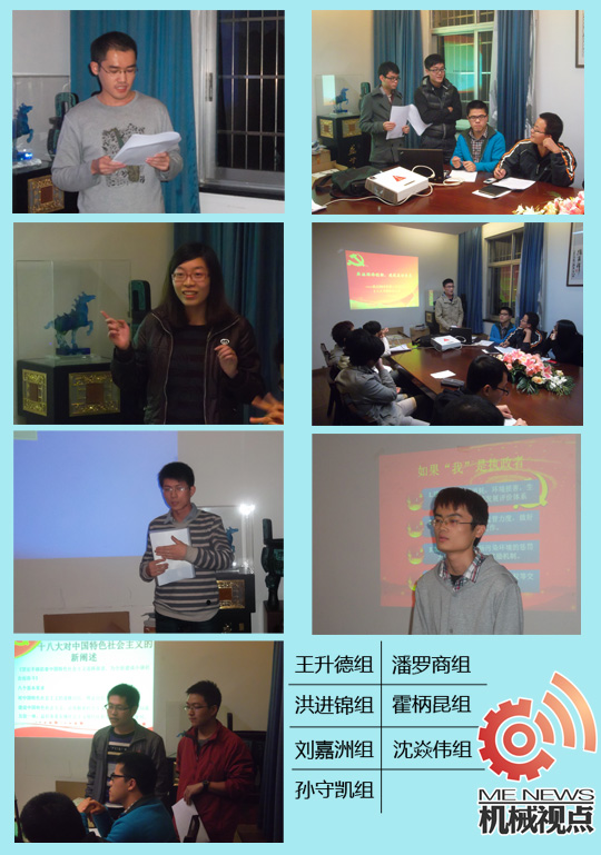 11月19日晚9:00,机械系本科生第二党支部以十八大的胜利召开为契机,围绕十八大的八个重大理论创新展开了一场主题演讲比赛,支部的新老党员、积极分子齐聚一堂,大家都积极参与到活动中。