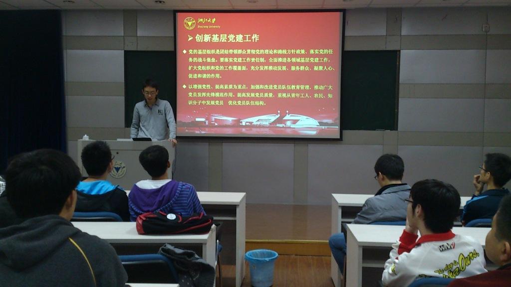 胡锦涛强调,要全面提高党的建设科学化水平,并指出中国特色社会主义事业是面向未来的事业,需要一代又一代有志青年接续奋斗。就此,大家结合当前的科研、学习、就业等相关方面的了解,交流了我们作为青年学生所面对的机遇和挑战,以及要如何树立理想、培养能力,将来是否有志投身军工科研事业等等话题。讨论过程中,大家畅所欲言,见解独到,气氛活跃。