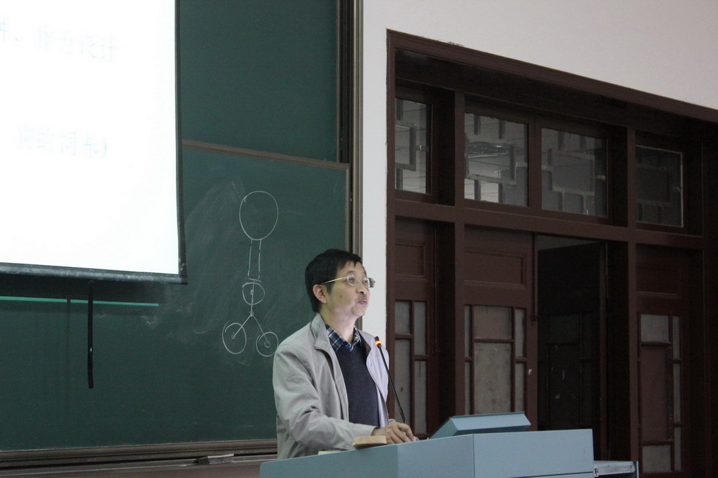 晚上六点半,开幕式正式开始。首先魏志渊老师宣布本届机械设计竞赛正式启动,并对竞赛流程和意义进行了简要介绍。他指出,参加竞赛最重要的是提升同学们的创新能力,只有热爱机械,喜欢设计,才能够全身心地投入竞赛之中,取得好成绩。同时,他希望同学们实事求是,避免弄虚作假,本着诚信的原则参加这次竞赛。听了老师的发言,同学们很受感触。接下来,竞赛指导老师顾大强老师为同学们讲述了竞赛的意义,和机械设计大赛的创新理念,激发了同学们的参赛热情。随后,全国竞赛一等奖得主李逢春、卢石松学分享了他们的参赛经验,并向同学们展示了今年全国竞赛和省竞赛中的优秀作品。他们的讲话和ppt展示深深地吸引了各位同学,将本届开幕式推向高潮。