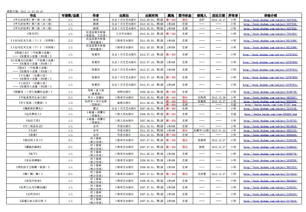 书籍的管理和借阅十分方便。书库所有书籍信息挂在班级主页和工图11硕团支部微博上,详细地介绍了该书的作者、版次、藏地等信息,还附有内容简介,可以很方便地查询,并有专人维护,及时更新。若是有感兴趣的书,只需告知负责人便可自行借取,而借阅时间也相对较长,完全可以利用闲暇时间,不紧不慢,细细品读。