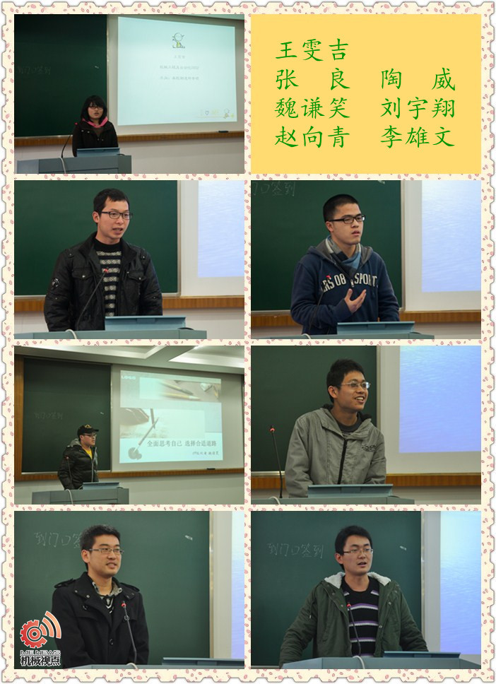 在交流会现场,学长们讲得妙语连珠,学弟们听得入神,不时进行交流,气氛十分融洽。通过这次交流会,机自专业10级、11级的学弟们对自己毕业后的去向选择有了更多的了解,并且可以根据自身情况提前作出选择以便尽早准备。