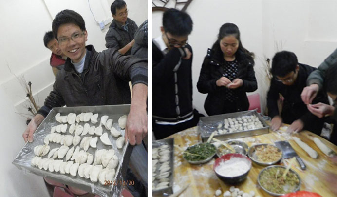 一年一度冬至到,是缘分让机电12硕2班的兄弟姐妹能相聚在浙大欢度佳节,为了让同学们感受到家的气息,大家纷纷响应要聚在一起包饺子来共同度过这个难忘的日子。2012年12月19日下午4点,机电12硕2班的同学们齐聚在南门外的东北菜馆,在欢声笑语中,大家提前感受了冬至佳节家一般的温暖。