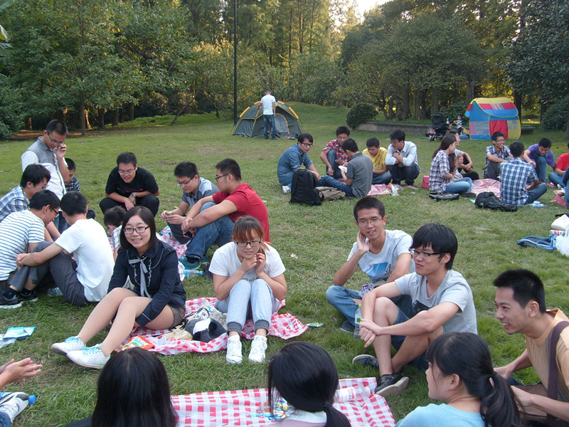 登上老和山之后,大家经过短暂的休息便沿着栈道向我们活动地点—-杭州植物园进发,一路风景宜人,温暖的阳光蒸腾了前几日的雨水,带着洒落一地的桂花香气,沁人心脾。巧遇机电13硕士二班的同学和外院的女生们开展联谊破冰活动,大家在一块草坪上围成一圈,玩小游戏增进彼此交流。更有外院女生的加入,同学们玩得更加尽兴,现场欢声笑语不断。