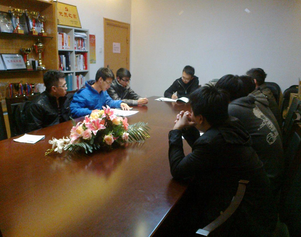 2013年11月19日晚,机械系机自工业工程11级本科生党支部在教11-447会议室举办了民主生活会,本次会议的主题是“深入学习十八届三中全会理论”,会议由冯嘉炜党支部书记主持。