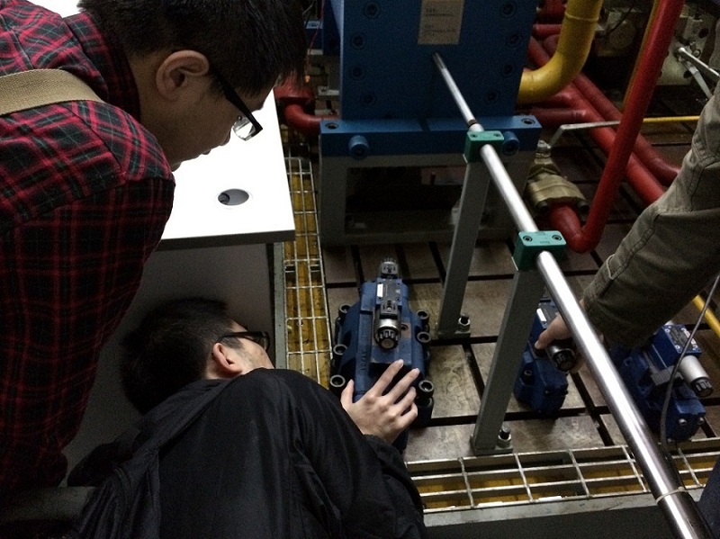阴雨淅沥的天气,依然挡不住同学们的热情。“走进实验室”活动分为师兄带领参观,自主参观,交流探讨三个环节。同学们到达液压老楼,受到师兄的热情接待,并且在师兄的带领与介绍下,对实验室一些相关的专业设备进行了了解与学习。