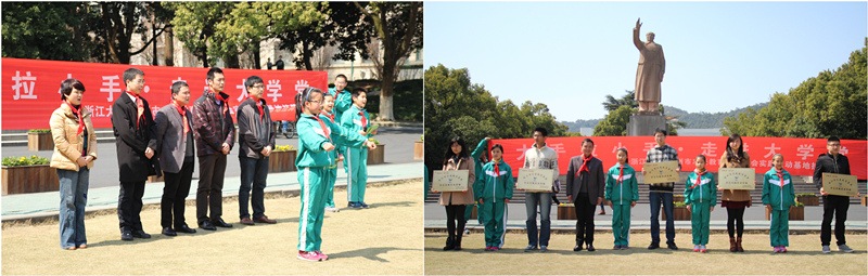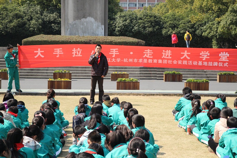 初春时节,风和日丽。3月14日中午一时许,求是教育集团浙大附小师生一行200余人走进玉泉校区,举办“大手拉小手,走进大学堂”社会实践活动。自浙江大学机械工程学系2012年在西湖团区委下属小学成立“科普小课堂”志愿服务基地两年之后,杭州市求是教育集团走进我校,正式挂牌成立“浙江大学与杭州市求是教育集团社会实践基地”,受到了我校、我系两级团委老师和同学们的热烈欢迎,形成了双向支持、长久合作的社会实践和志愿服务机制。继去年附小师生参观后,我系金工加工中心现已正式成为求是小学校外实践基地。挂牌仪式上,系团委代表广大师生向小学赠送了由3D打印技术制作加工的礼物,引起了小同学们的极大兴趣。校团委副书记朱佐想老师、机械系团委副书记闫小龙老师、控制系团委杨亮老师出席了活动。
