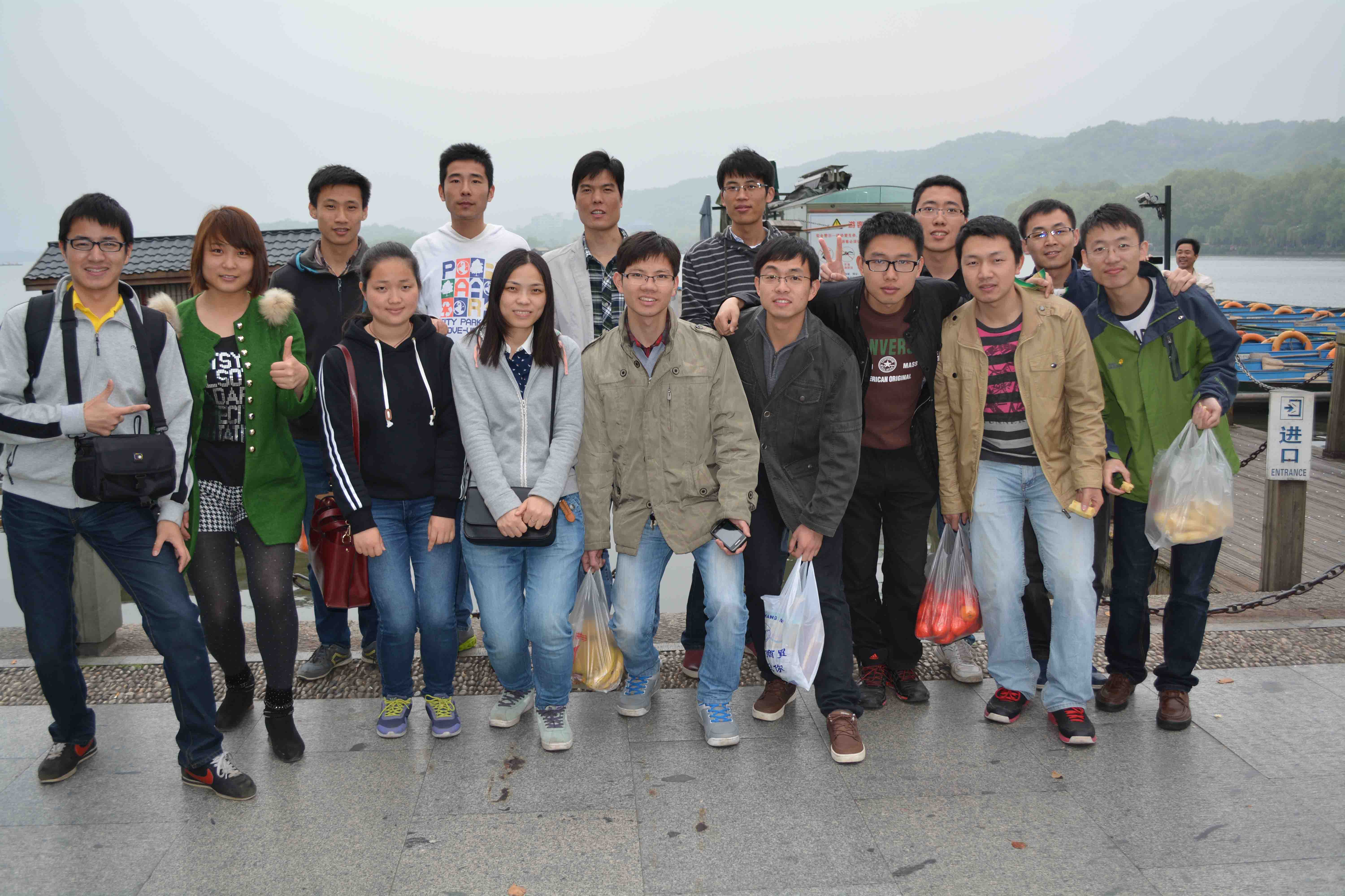 4月13日下午,同学们在玉泉校区正门口集合,乘车到西子湖畔六公园。然而天有不测风云,自划船码头管理处接到气象台通知,由于天气原因为了游客的安全考虑暂时关闭了码头,也就无从租船游玩了。大伙讨论商量之后,决定将活动改为在西子湖畔徒步畅游。大多数同学来杭州一年多了,还没有好好的在西湖边游览,更不用说是和这么多班级同学一起畅游,想来应该别有一番乐趣。人间四月,天堂杭州,尽管天气不是很好,但却一点也不影响同学们的游览兴致。远眺湖光山色,畅谈心中所想,文字激荡,颇有一番气概。