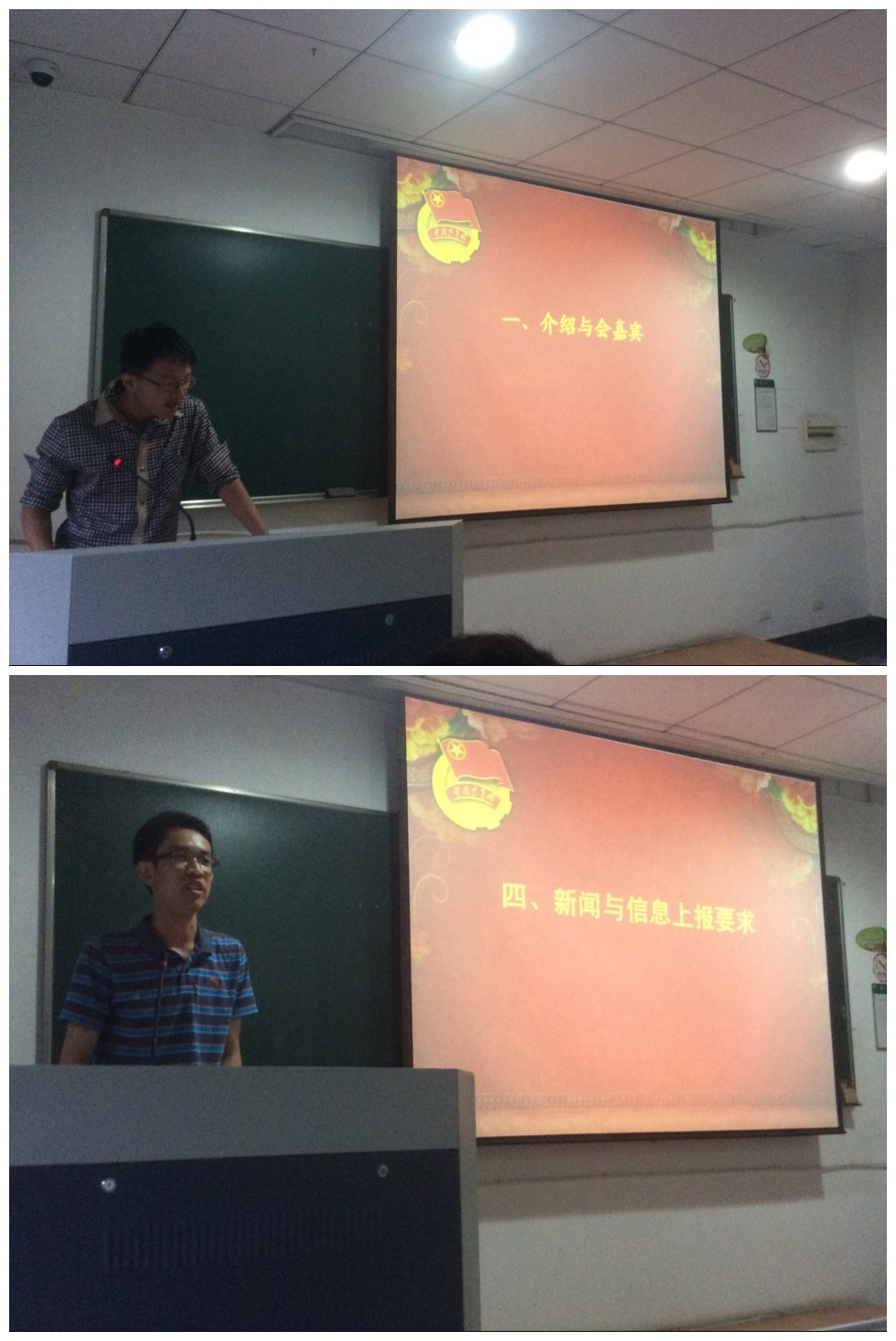 主持人商晓波同学首先回顾了机械系往年的社会实践取得的丰硕成果,同时也介绍了今年机械系社会实践的立项总体状况。随后,团学联实践部牛小淼同学对大家进行了安全知识培训和信息报送培训。他从自身工作经验出发,结合许多详细的例子,向大家详细讲述实践前期准备、实践过程要求、以及实践后期的总结和评奖制度。牛小淼提醒同学们实践前期系里会为大家统一购买保险,也叮嘱各个团队做好内部分工,联系好实践基地,提前调查清楚当地的交通、住宿、气候、饮食等条件,切记安全第一。之后,他在信息报送培训上对新闻和照片的格式、内容、报送渠道等方面进行了详尽的讲解。