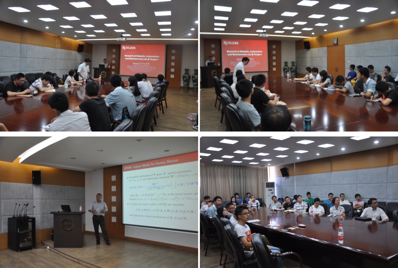 应浙江大学机械系机电所的邀请,现任罗格斯-新泽西州立大学副教授(终身制)的易劲刚教授于7月30日来校访问。上午10时,在液压老楼四楼会议室,易教授给在校众多师生作了一次精彩的报告。报告会由刘涛老师主持,刘老师曾在海外与易教授长期合作,两人在研究课题上有着紧密的联系。机电所所长王庆丰教授、姚斌教授、雷勇教授、朱笑丛教授等众多老师参与此次报告会,会议气氛紧张而浓烈。