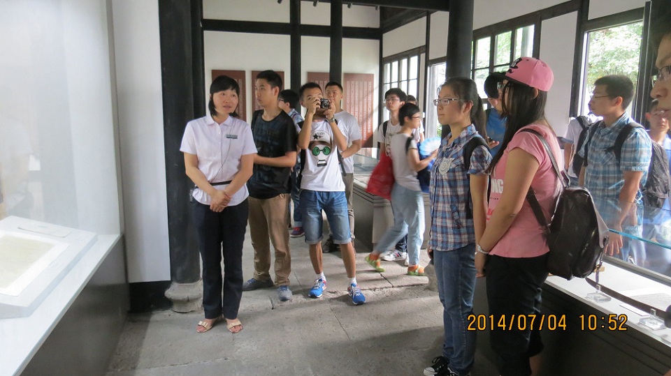 之后的一站是秋瑾故居。在去秋瑾故居的路上,实践小组路过了秋瑾从容就义的地点——古轩亭口,同学们都驻足静立,缅怀这位伟大的革命先驱。在秋瑾故居,实践小组成员们更加深入的了解这位女侠的一生:“休言女子非英物,夜夜龙泉壁上鸣”。墙上悬挂的“读书击剑”的横幅时刻提醒着同学们,要想报效祖国,需要努力学习,打好基础。