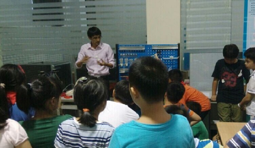 参观过程中,我系老师生动形象地运用各种例子和比喻向同学们介绍和阐述着矗立在他们面前的巨大机床。同学们也都很讲秩序地前排蹲,后排站,认认真真地聆听老师的讲解。对他们来说,这样的参观实践是难得的走出校园学习新知识的机会。不论是数控车床,数控铣床,线切割机还是外圆磨床,同学们都饶有兴致地听着看着。讲解完毕之后,同学们也都很有礼貌地举起手提问题,老师和志愿者们也都耐心地一一为之解答。