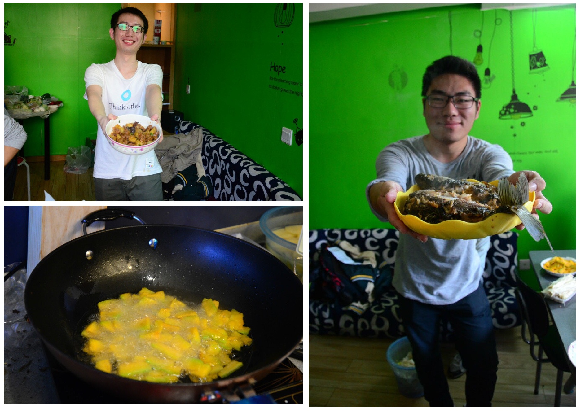 随后,我们全班一行人来到了位于剑桥公寓的日租房间。同学们按照预定的计划分头行动,各自忙碌起来:女生们负责按照事先列出的清单采购食材,而男生们便留在公寓内打扫卫生、跃跃欲试等待大显身手。中午11点,随着第一道“辣子鸡丁”新鲜出炉,好戏正式上演,同学们做的菜真实玲琅满目:可乐鸡翅、蛋黄南瓜、红烧鲫鱼、土豆牛肉、京酱肉丝…要知道,这些菜都是挑剔的女生们点的,而机械系的男身们当仁不让,现学现用,赢得了大伙阵阵好评。
