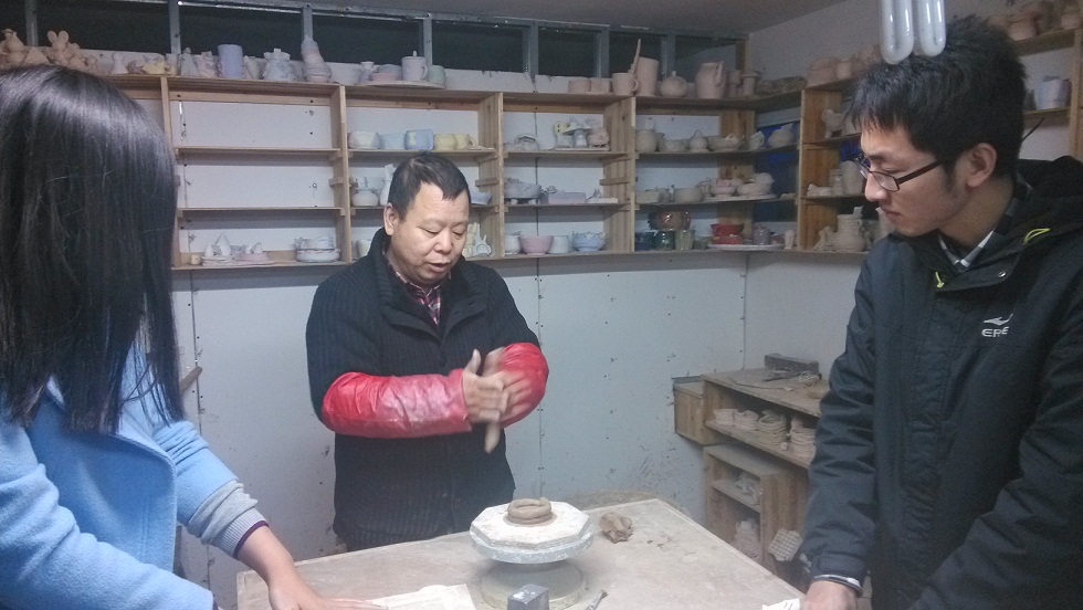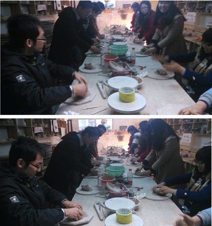 之后老师开始给大家讲解如何进行陶艺作品制作。并以传统的圆形回转体作品为例给大家进行了讲解。小组成员都听得十分认真,也初步掌握了陶艺作品制作的要领。