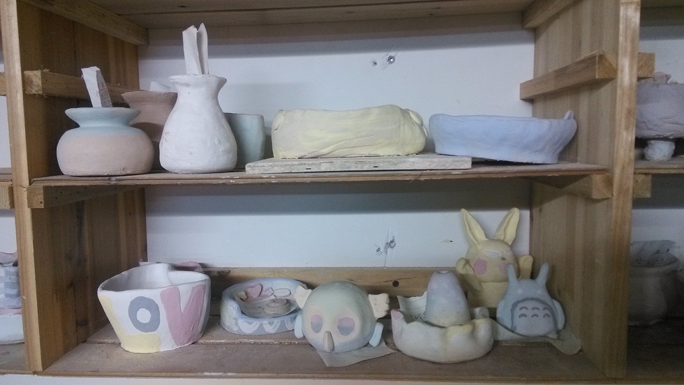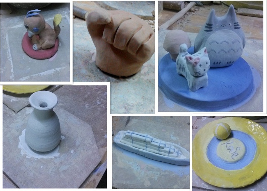 一段时间之后大家都制作出了自己的理想作品,然后又经过了初步吹干、上颜料等工序,陶艺作品也基本完成。