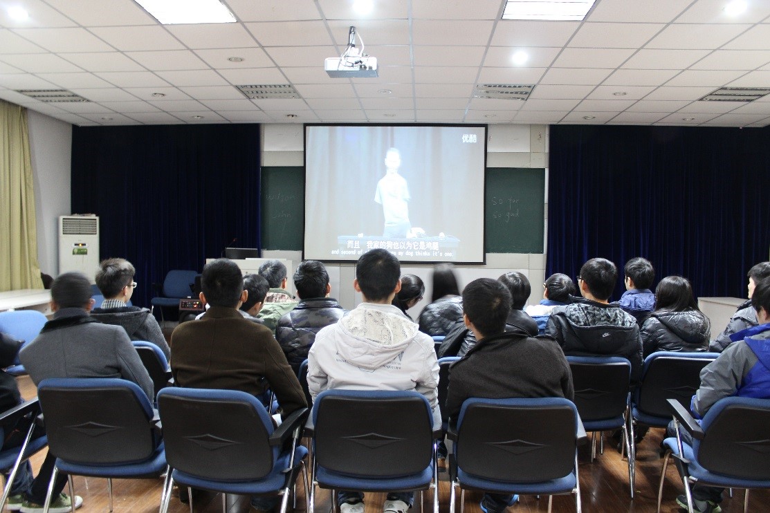 活动一开始,主持人肖箫组织大家分成两队一起做游戏——“老虎棒子鸡”。首先进行组内热身PK,接着每队派出自己的最强队员终极PK,输掉的一方中的其他队员将进行集体的惩罚,做20次俯撑。这个游戏简单有趣,同学们玩得不亦乐乎。最后,主持人就参加游戏时的心态和感想分别采访了终极PK的同学、接受惩罚的同学和优胜组同学。同学们纷纷表示自己的责任和压力更大了,很想赢,而一旦输掉心里会有十分强烈的愧疚感;而同组被惩罚的同学则表示,尽管惩罚力度加大了,随着被惩罚力度的增加会积累一点点不满情绪,但是,因为大家是一个组的,所以总是会自觉地包容并支持,而既然每个组参与PK的同学是大家一起选出来的,所以不管输赢都是大家共同的责任。自然而然,主持人趁机切题引出今天的主题——“新时代的社会责任感”。在社会生活中,我们每一个人扮演着无法替代的角色,有着不可或缺的作用,履行着不可小觑的责任。这就好比一台完整机器,我们每个人都是其中平凡的小零件,只有每个零部件都履行自己的责任,正常工作,那么这台机器才能完美地工作下去。社会责任感就是要每个人做负责任的自己。