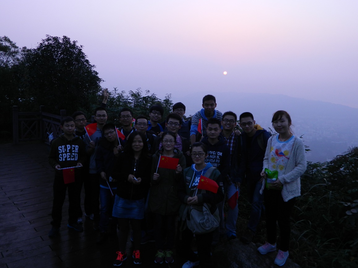 在理论学习之余,党支部成员还以实际行动践行抗战精神。为培养党支部成员“拼搏、奉献、团结、自强”的精神风貌,强化党支部成员的坚强意志和必胜信念。党支部举办登山观日出活动,10月18日凌晨4点支部成员就早早起床,集合完毕后,进行动员及宣誓活动,随后支部成员手持国旗向老和山进发,先后登上其中的秦亭山和英雄山山顶。山路陡峭加上周围环境漆黑,增加了我们爬山的困难。正是这些困难让支部成员体会到抗战的艰难,同时也理解了团结的伟大。支部成员互帮互助,意志坚定地登上了老和山山顶,等待日出的过程中,大家一起合唱红歌,氛围和谐融洽。党支部最终见证了朝阳的升起,见证了黑暗向光明的转换,就像抗战时期,虽历经黑暗,经全国人民共同努力终将迎来光明。