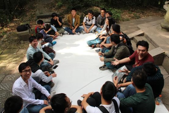 早晨八点,迎着和煦的秋日阳光,在机械工程学院辅导员霍柄昆老师、兼职辅导员等的带领下,我们一行人乘车来到了位于龙坞风景区的大清谷。在简单地安置完行李、饮料之后,我们沿旁边的一座小山拾级而上,来到一座亭子旁进行素拓。