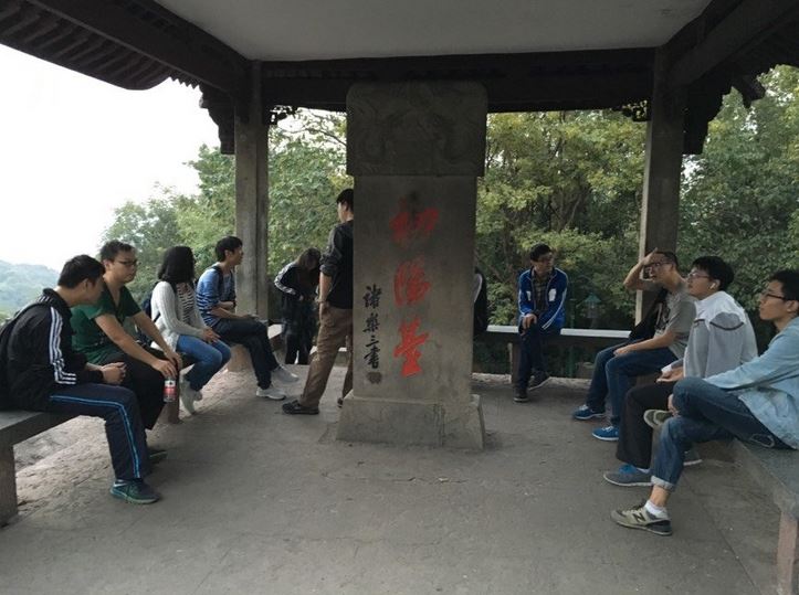 在徐燎燎同学的带领下,大家从浙大附中公交站旁边的小路上山,大家在山下仔细研究了一番地图之后就上山了,一路上感受着宝石山凉凉的秋意。