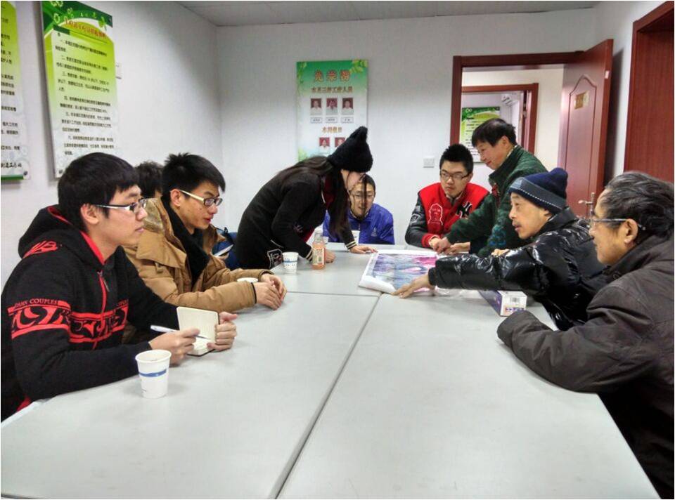 上午9点,志愿者服务小队来到北山工疗站。北山工疗站副站长罗大姐带领工作人员和工友们热情地接待了小队,并介绍了一些工疗站的基本情况。在了解了工疗站情况之后,本次项目的负责人彭皓珂同学向在座工作人员和工友们详细介绍了”共筑爱之家”公益项目的概况和安排,得到了工疗站方的支持和欢迎。考虑到工友们的各自情况有所不同,为了更有针对性地开展后续活动,小队成员向工友们询问了一些简单问题,想从中得知工友们的实际需求。工友们非常主动地回答了问题,并与小队成员展开了积极的交流,希望志愿者们能在电脑手机软件、资讯服务、文娱活动等方面提供服务和支持。