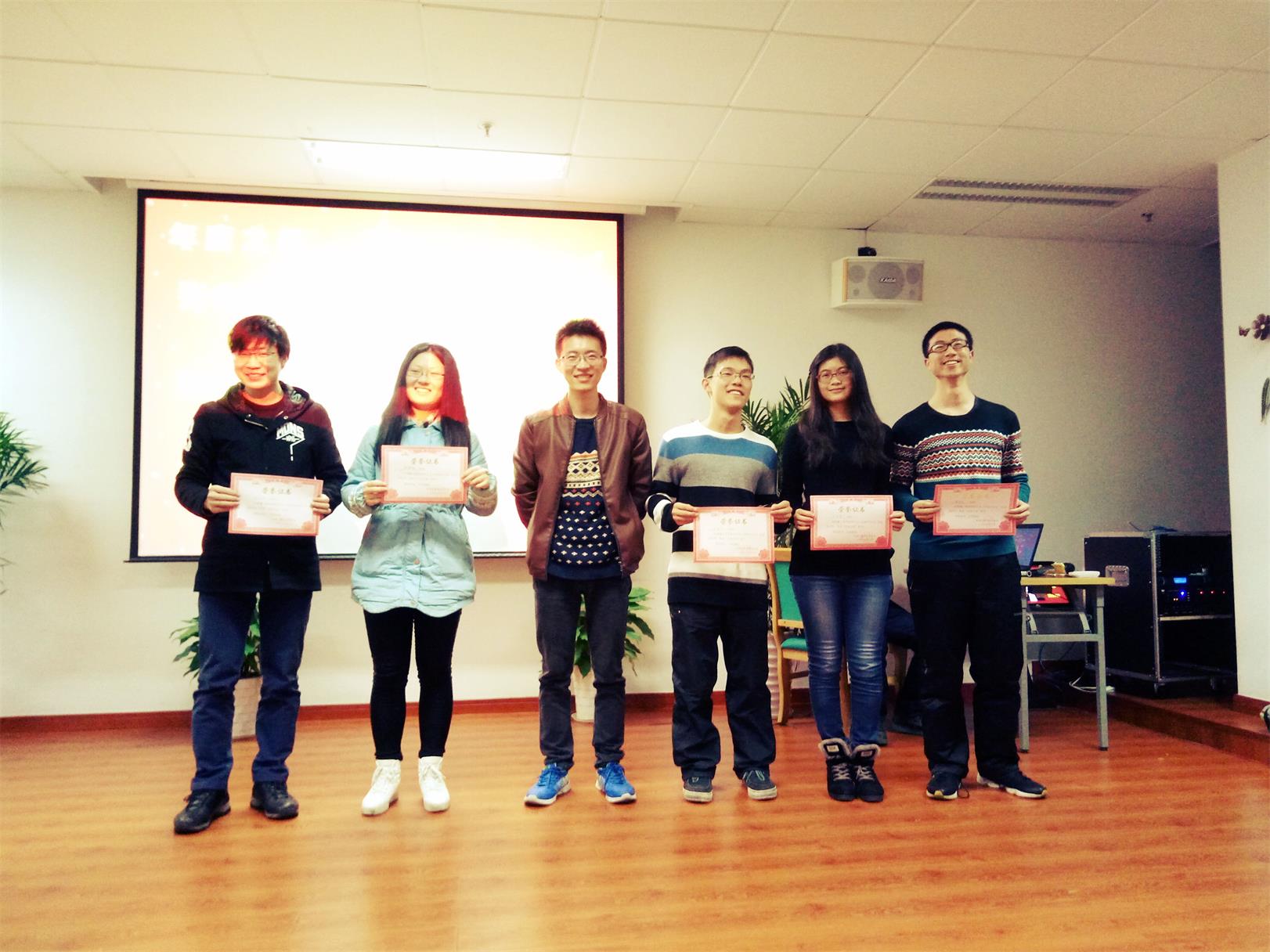 年会的第二部分,对在秋冬学期学生工作中做出突出贡献的同学进行了肯定与嘉奖。在接下来的颁奖典礼中,三位主席颁发了“年度之星”奖状给张会轩,温群雅,陈金星,曾睿民,陈建国,李怡萱六位同学,另颁发了“突出贡献奖”和“优秀干事”奖给多名相关同学。正如主席所说,奖本身没有特别的含义,只是希望给大家的工作以肯定。
