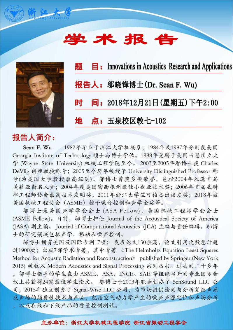 关于美国韦恩州立大学邬晓锋博士学术报告的通知