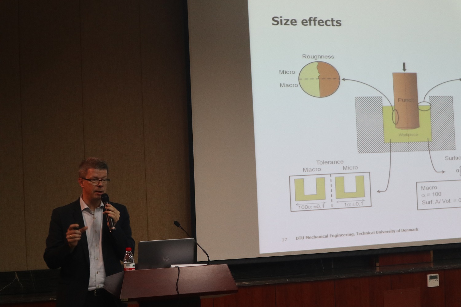 Hans院士由浅入深的进行了精彩的介绍,首先,他向大家展示什么是微制造,然后结合实际的例子阐述了微制造与传统机械制造的区别,并重点解释了尺寸效应对机械制造的影响,最后阐述了机械制造中存在的一些难点以及现有的处理办法。在Hans院士的带领下,同学们领略了微制造领域的全景,获益匪浅。