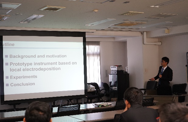 11月21日,访学团来到东北大学青叶山校区开展交流。上午,东北大学大学院工学部机械系高伟教授热情接待了访学团一行。高伟教授向访学团简单介绍了东北大学的相关情况,并对我浙学子提出了殷切期望。接下来,“日本东北大学-浙江大学博士研究生先进制造研讨会”在东北大学举行。浙江大学机械工程学院的5位博士研究生作为访学团的代表从自己研究项目为切入点,展示了浙大学子的风貌。东北大学工学部机械系不同实验室的4位博士研究生也详细地展示了自己的研究课题。研讨会期间,同学们都对自己感兴趣的研究点积极提问,交流热切深入,使大家对双方的研究方向和成果都有了一个初步的了解。