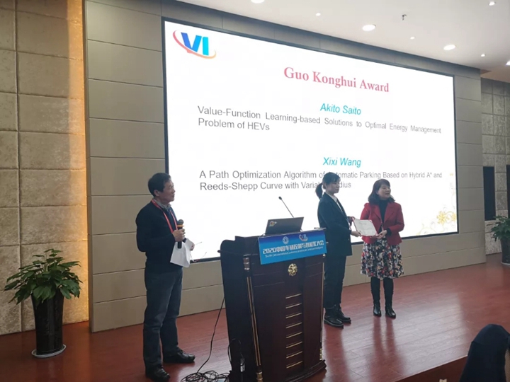 经过激烈的角逐,由本次评奖委员会主席哈尔滨工业大学刘志远教授宣布,最终获得郭孔辉青年作者奖的是来自北京航空航天大学的王淅淅和日本上智大学的Akito Saito。陈虹教授为获奖者颁发了荣誉证书。评选出最佳论文奖获得者是来自吉林大学的戴启坤,最佳论文奖提名奖的获得者是来自北京理工大学的郄天琪。曹东璞教授为获奖者颁发了荣誉证书。