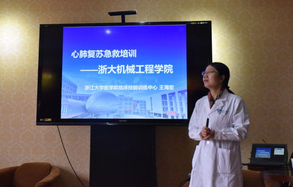 3月31日中午,学院工会邀请浙江大学医学院临床技能中心王海宏、郑柳娟老师,为我院教职工开展了急救专题培训,项淑芳副书记以及30余名教职员工参加活动。