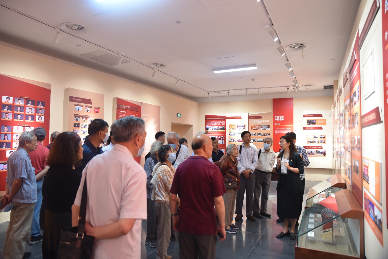 参观结束后,退休的支部教工们在党建馆门口合影留念。