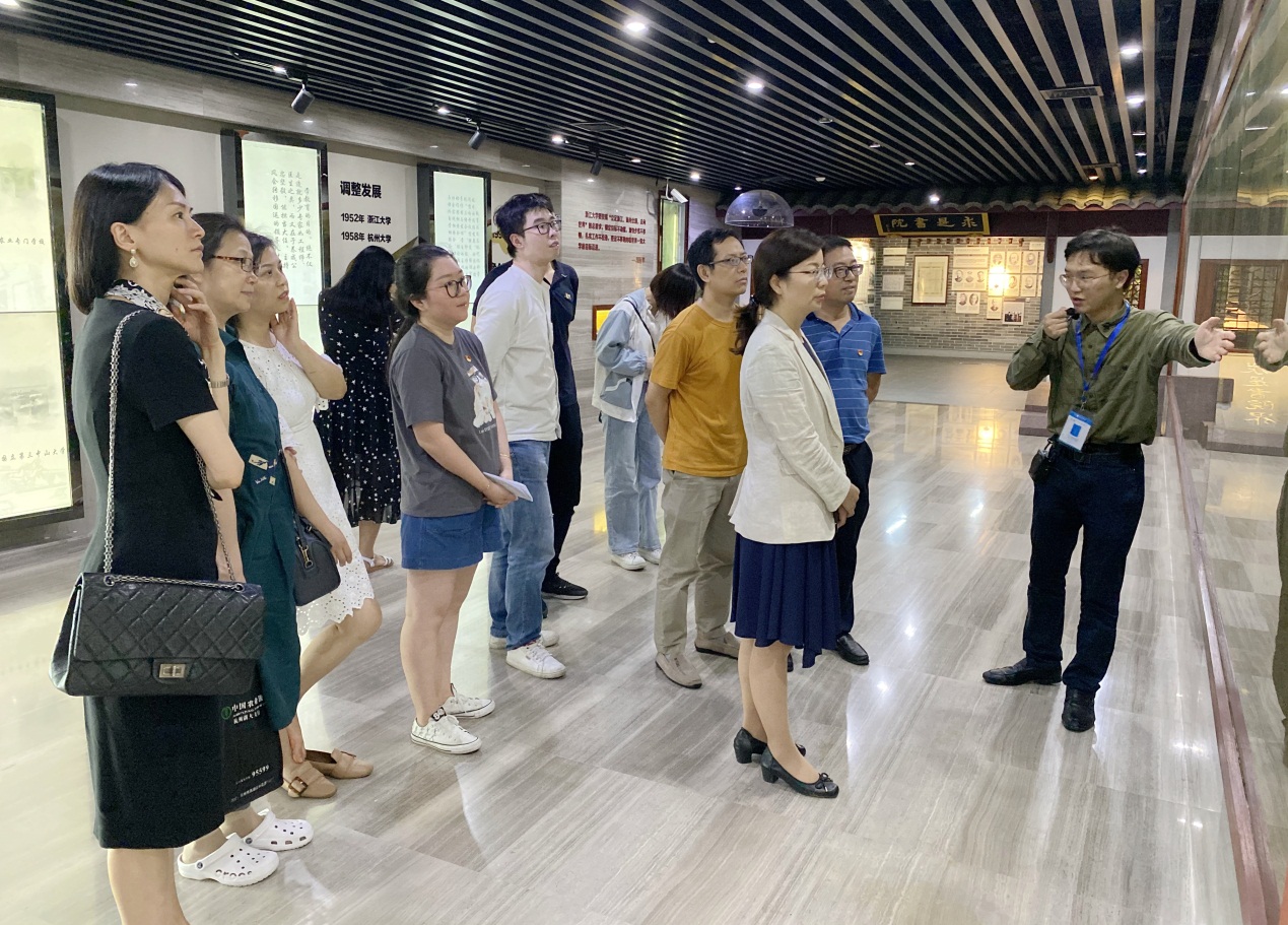 在支部书记潘善洪老师的带领下,支部全体成员首先来到浙江大学校史馆。校史馆展馆建筑面积达800平方米,馆藏丰富,结构完整,整个场馆的叙事脉络十分清晰。整个展览共分四个部分:求是溯源、探求崛起、调整发展和争创一流。展览以550余幅照片、120多件校史文物,真实生动地再现了浙江大学跨越三个世纪、沧桑而绚烂的百年发展历程。