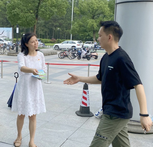 随后,机械工程学院机关党支部组织党员前往紫金港校区文化广场,开展了环保宣传等志愿服务活动。