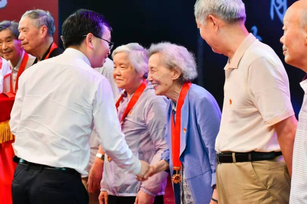 会议首先为“光荣在党50年”的党员老同志举行了隆重的纪念章颁发仪式。张丽英、李志夫、吴根茂、周广仁、张光琼、李东海、孙征伟、陈秀宁、蒋承蔚、陈宗农、陈培里等16位党员代表获得此项荣誉称号。他们默默无闻,将自己的一生都奉献给了教育事业,即使白发苍苍,年近耄耋之年,也在努力将自己的知识传播给更多的人,用诲人不倦和兢兢业业的行为诠释了党员的初心与使命。随后,举行了学院先进基层党组织、优秀共产党员、优秀党务工作者等荣誉称号获得者颁奖仪式。党委书记梅德庆教授、副书记项淑芳老师为各位获得各荣誉称号的老师和同学们颁奖。
