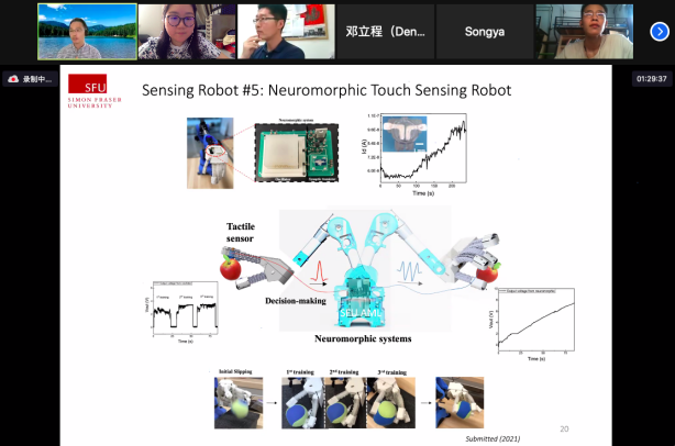 本次报告中,Dr. Woo Soo Kim主要介绍了SFU增材制造实验室的近期研究活动,重点介绍 3D 打印,通过3D打印生成复杂 3D 外形的定制设计,使传感器能够集成在物体曲面上,着重讲述了用于便携式传感应用的 3D 打印传感器系统的设计、制造和表征。Dr. Woo Soo Kim还展示了包括柔性传感、数字微流体和基于无线射频传感器在内的各种传感器平台在传感机器人中的应用,并通过本次讲座,向听众介绍了“生物医学传感机器人”这一新兴概念,大家收获良多。