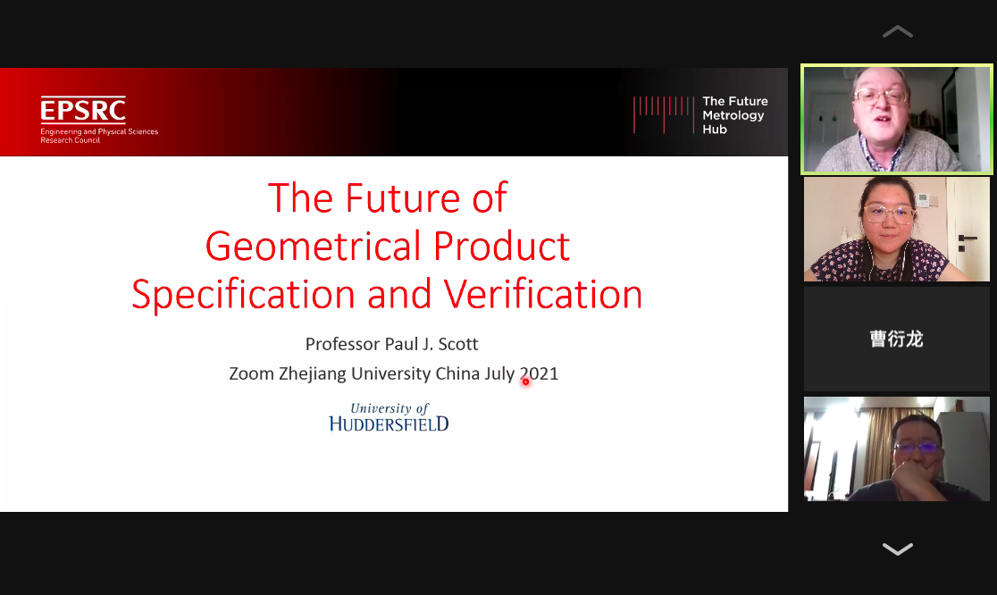 2021年7月30日,应浙江大学机械工程学院邀请,英国哈德斯菲尔德大学Paul J.Scott教授为我院师生举行了一场线上学术报告会,其主题为“The Future of Geometrical Product Specification and Verification”。报告会由我院曹衍龙教授主持,学院近130名师生线上参加。