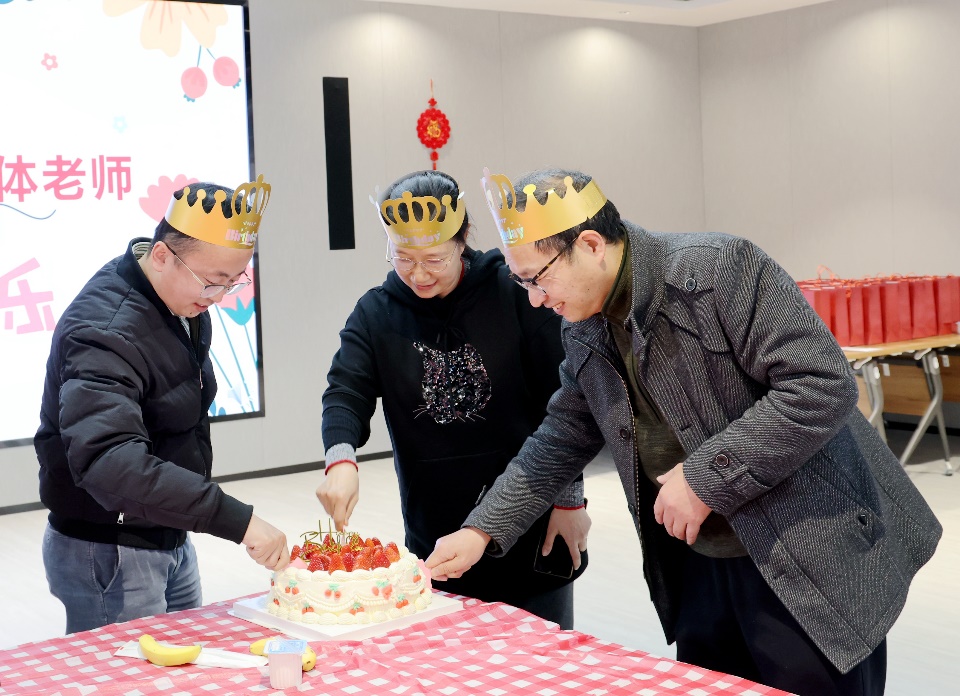 为提升学院教职工归属感、获得感和幸福感,传递学院的温馨关怀,2023年3月9日,机械工程学院集体生日会在开物苑2幢326室成功举办。学院党委书记项淑芳老师,常务副院长居冰峰老师,院长助理王柏村老师等班子成员到场为老师们庆祝生日。生日会由学院党委副书记、工会主席俞磊老师主持。