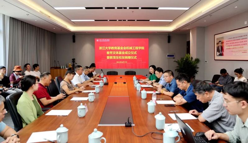 2023年8月7日,浙江大学教育基金会机械工程学院春芳文体基金仪式在浙江大学紫金港校区开物苑成功举行。意大利浙江大学校友会会长、八四届精密机械校友蔡茂生,浙江大学发展联络办公室副主任、教育基金会副秘书长丁海忠,衢州浙江大学校友会会长单建军校友,蔡茂生校友好友叶新芳女士、方景春先生、陈光浦先生,蔡茂生校友爱女蔡文蕊女士以及学院部分师生代表等30余人参加仪式。仪式由机械工程学院党委书记项淑芳主持。