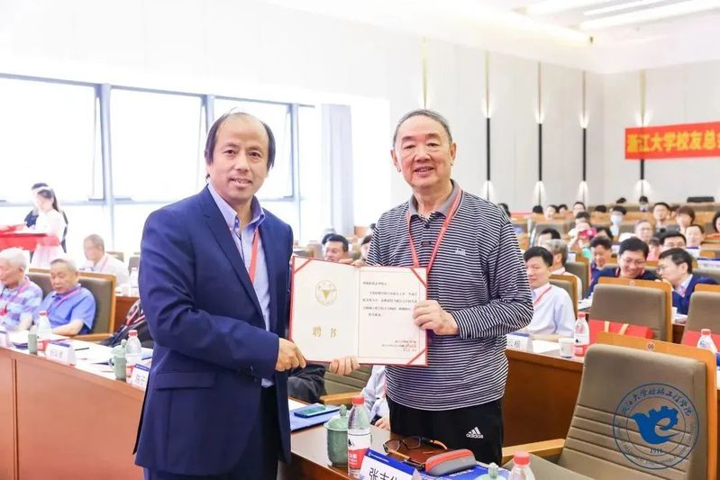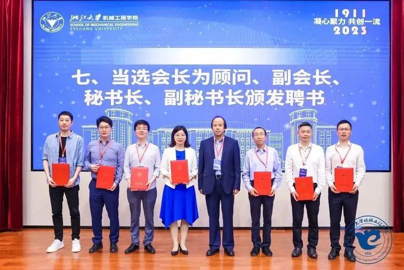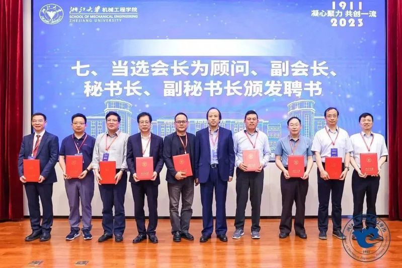 会长杨华勇院士为第三届机械工程学院校友分会理事会顾问、副会长、秘书长、副秘书长颁发聘书。