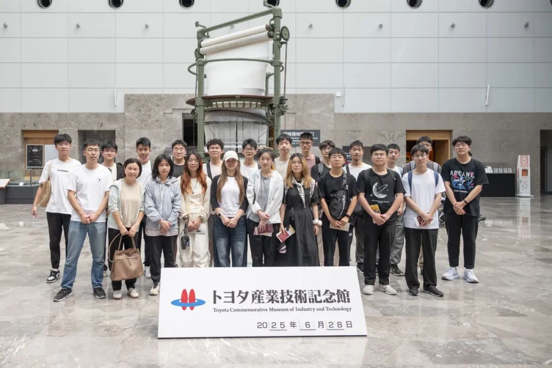 丰田产业技术纪念馆:在纪念馆中,交流团师生追溯从1911年自动织机到汽车制造的跨越,深入探索了纺织流水线全自动化演进与"仿制-消化-创新"的技术发展模式。