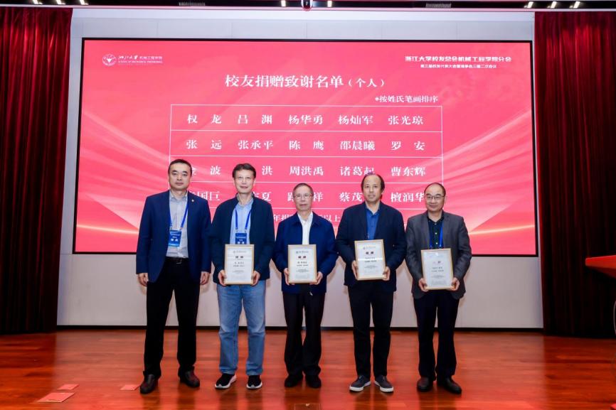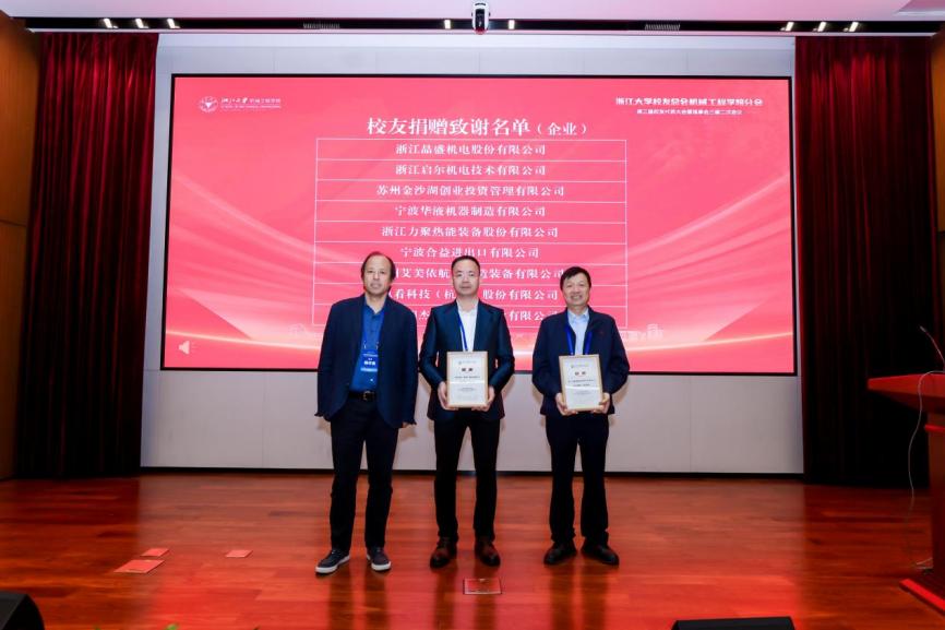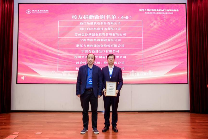 在致谢环节,杨华勇、徐兵为近年来捐赠支持学院发展的校友企业代表、个人代表、集体代表颁发了致谢证书。