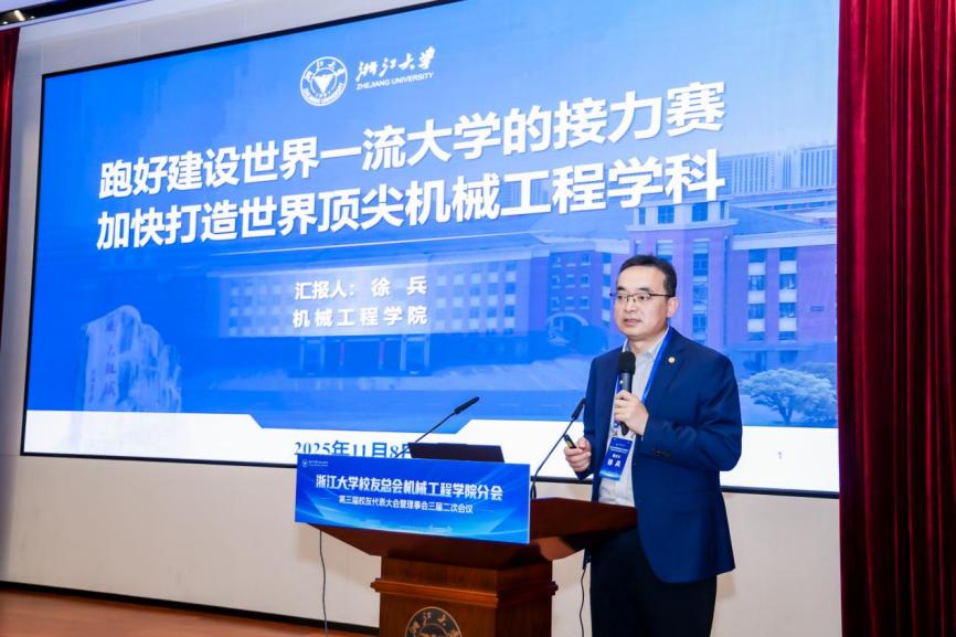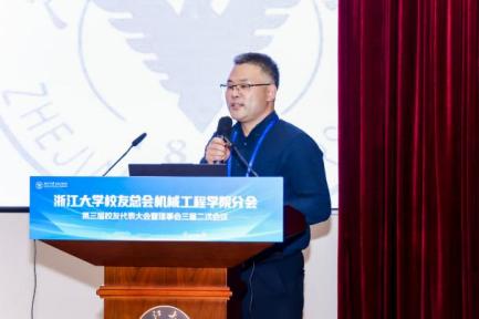 杨华勇致欢迎辞。他指出,近年来机械校友分会共计成立8个地方校友分会,积极组织校友活动,有效增进了校友与母校之间的联系。校友们以实际行动践行“求是创新”校训,在基金支持方面,学院新增签约34项,设立了路甬祥智能制造科教基金、林俊德教育基金、兆丰基金等多项基金,到款达数千万元。在人才培养方面,多位校友担任行业导师,助力学生成长发展。依托校友支持,学院在学科建设与人才培养等关键领域均交出了亮眼答卷,相关成果获得各界高度评价。当前,机械行业正处于智能制造与数字转型的战略机遇期,杨华勇希望广大校友与母校凝心聚力,深化联络纽带,强化服务水平,做强校友基金,为学科建设、学子成长等各项事业发展注入新动能。