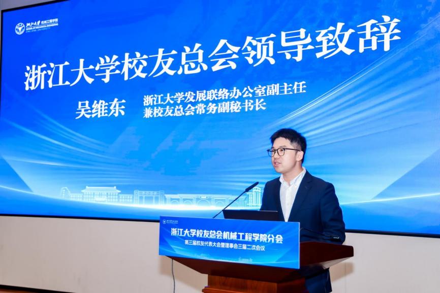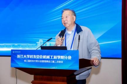 吴维东在致辞中对本次会议召开表示祝贺,对与会校友表示欢迎,并对校友关心支持母校发展表示感谢。他指出,浙大机械学科始于1911年,百余年来培养了三万余名优秀校友人才,学院秉持“求是创新”校训,积极服务国家科技战略发展。学院高度重视校友工作,持续搭建沟通合作平台,成立多项专项基金,两次获评学校“发展联络工作先进集体”。他希望机械分会进一步加强团结协作,激发校友潜能,健全工作机制,与校友总会协同共建母校与校友发展共同体,共同助力学校迈向世界一流大学前列。
