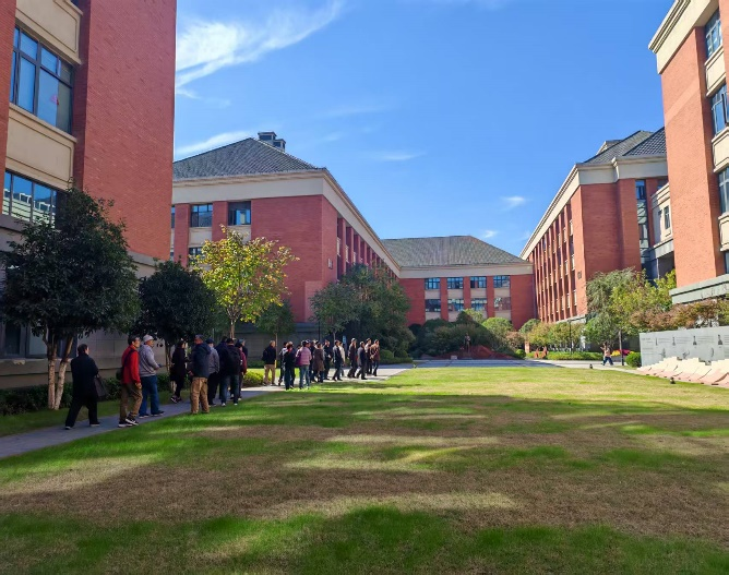 19日上午九点半,校友们乘车从玉泉校区抵达紫金港校区机械工程学院开物苑大楼,机械工程学院发展联络办公室张凯、潘善洪、伍荣等老师热情相迎。学院大厅展示屏上正放映着当年的毕业合影,一张张珍贵影像唤醒了尘封的记忆,大家纷纷驻足凝望,青春往事与同窗笑貌仿佛重现眼前。在浓浓怀旧氛围中,校友们于开物苑大楼前拍摄了重逢后的首张集体照。