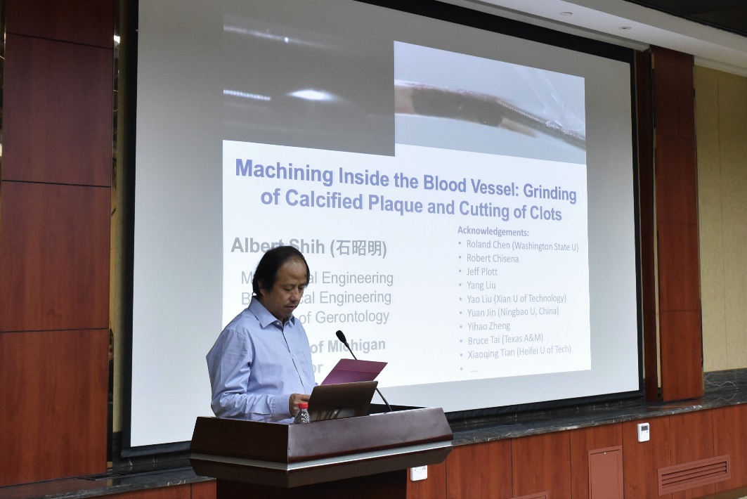 On the afternoon of April 18, 2019, at the invitation of the School of Mechanical Engineering of Zhejiang University, Professor Albert Shih of the University of Michigan held a lecture on "Machining Inside the Blood Vessel: Grinding of Calcified Plaque and Cutting of Clots" at Shao Keguan 211, Yuquan Campus . More than 50 teachers and students from the School of Mechanical Engineering participated in the report meeting. This report was hosted by Academician Yang Huayong, dean of the School of Mechanical Engineering.