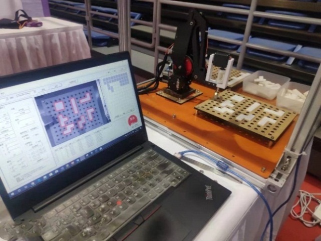 The theme of the competition "Creative Design: Intelligent Robots-Make the Future More Colorful" carries people's desire to inspire creativity and let robots serve the future life. Our students Wang Yifan, Lu Chengyu, Peng Deshang, Cai Kejing (supervisor: Gao Yu) participated in the project experiment show "Robot Tetris Experiment" with a novel concept, integrated visual recognition and AI algorithms, and controlled the robotic arm to grab and place Tetris and let the robot Playing the game, through continuous improvement of the mechanical structure and control program, the automatic recognition of Tetris, grabbing and calculation of the best placement of the cubes were realized, and finally won the first prize of theme one in this competition.