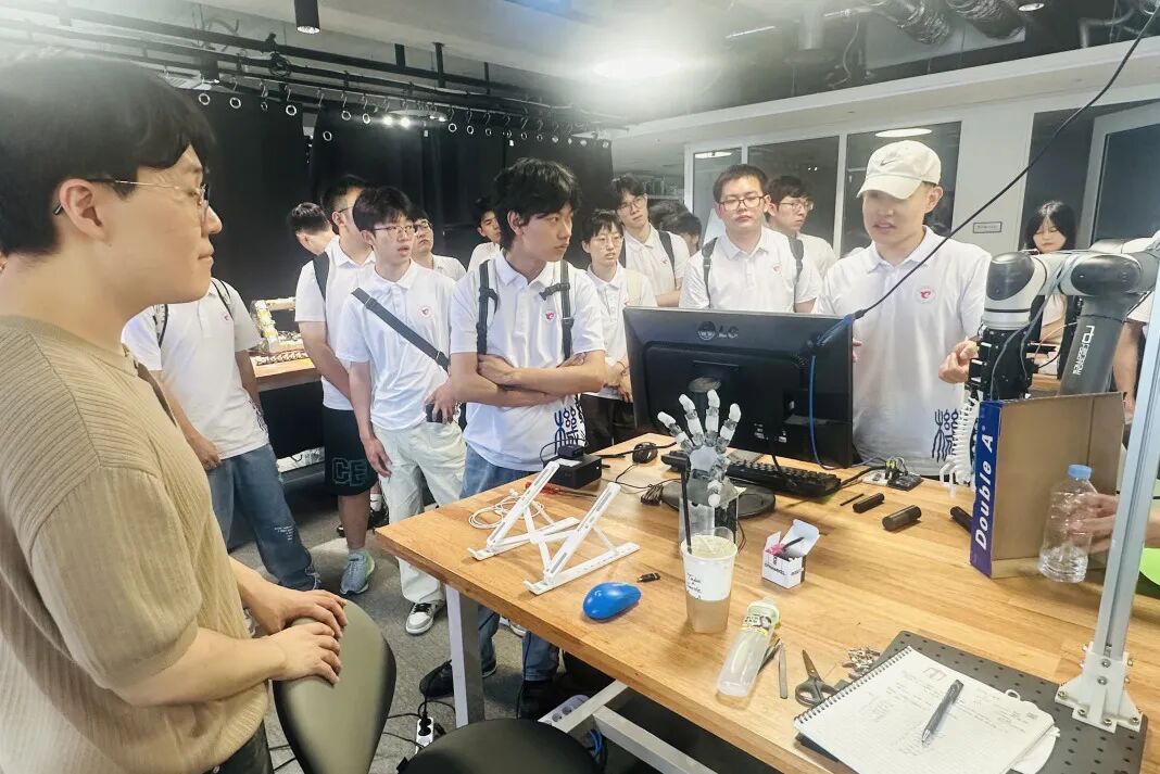 On August 28, the delegation visited the Department of Mechanical Engineering at Seoul National University and toured the Bio-Robotics Laboratory. Professor Kyujin Cho’s research group has long been dedicated to human-centric soft robotics and robotic grasping technologies. The team has consistently advanced breakthroughs in key technical challenges related to “dexterous robotic manipulation of complex objects,” particularly in areas such as biomimetic design of anthropomorphic hands, adaptive intelligent perception, and control algorithms. Guided by a research philosophy that emphasizes both focused breakthroughs and broad interdisciplinary expansion, the group has achieved deep expertise while maintaining a wide academic horizon—exemplifying a rigorous “precision engineering” ethos.