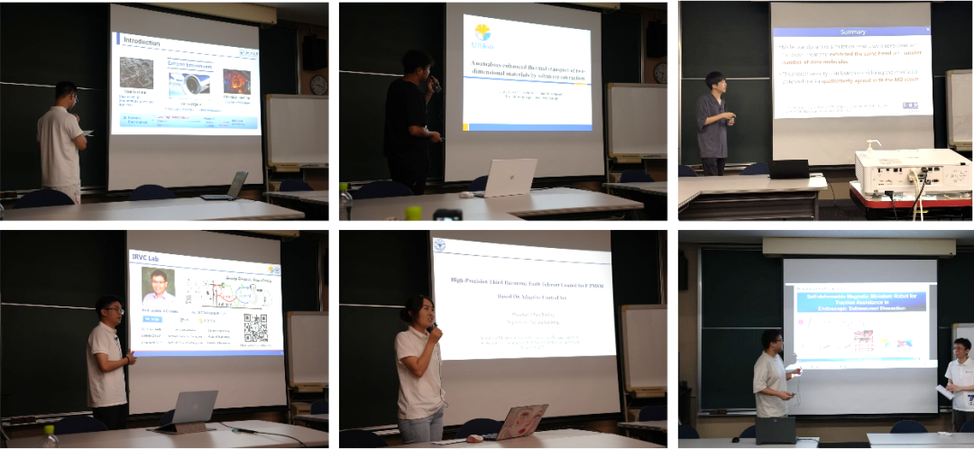 During the workshop, Ph.D. students from both universities presented their latest research findings: Jie Sun, Kohei Sato, and Bolan Zhang from the University of Tokyo reported on topics including molecular dynamics, heat transfer mechanisms, and thermal flow sensors, while Yu-Yu Hou, Jun Long, and Xinling Chen from Zhejiang University presented their work on micro-robotics and related areas. These presentations were followed by lively discussions and in-depth academic exchanges among all participants.