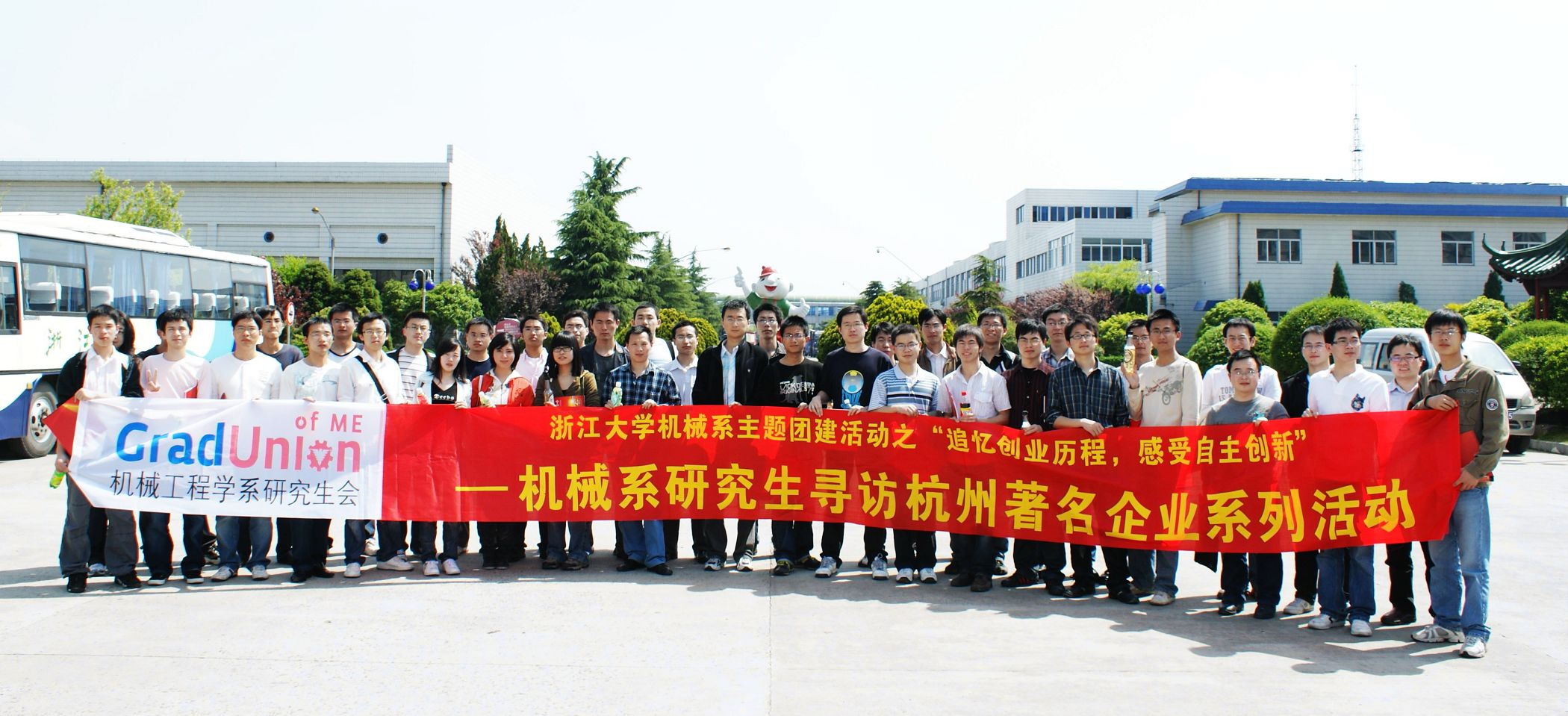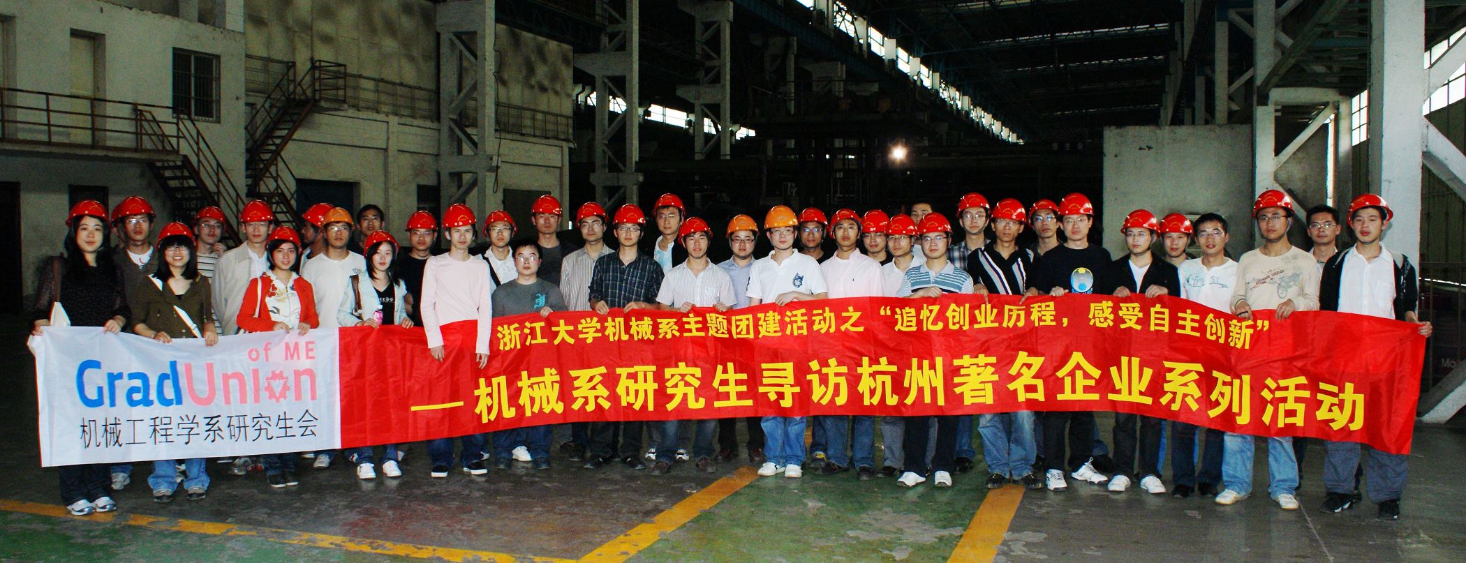 2009年4月15日,由浙江大学机械工程学系研究生会组织的“追忆创业历程,感受自主创新”——机械系研究生寻访杭州著名企业活动正式拉开帷幕。首站寻访的对象是杭州娃哈哈集团和杭州钢铁集团公司。本次活动让同学们感受到了创业的艰辛与伟大和自主创新强大的力量,开拓了同学们的视野,提高了机械系研究生团干队伍的凝聚力。